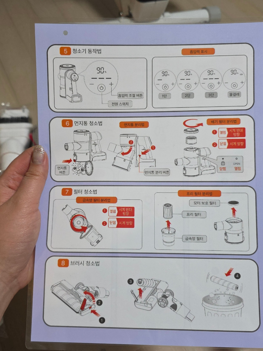 충전대와 청소기 조립 설명서가 들어있는데 그림으로 나와있어서 이해하기 쉬워요 ☺️