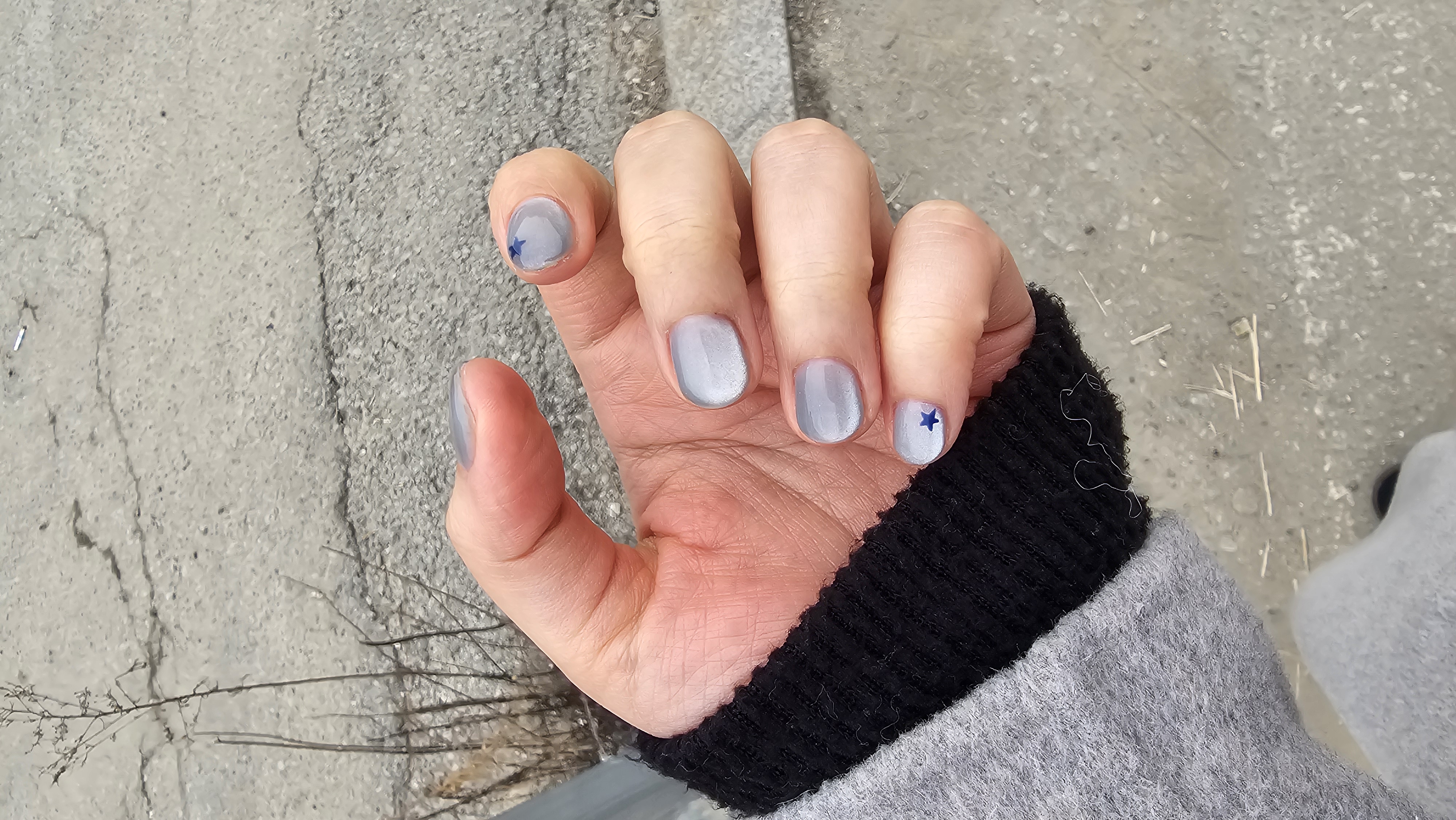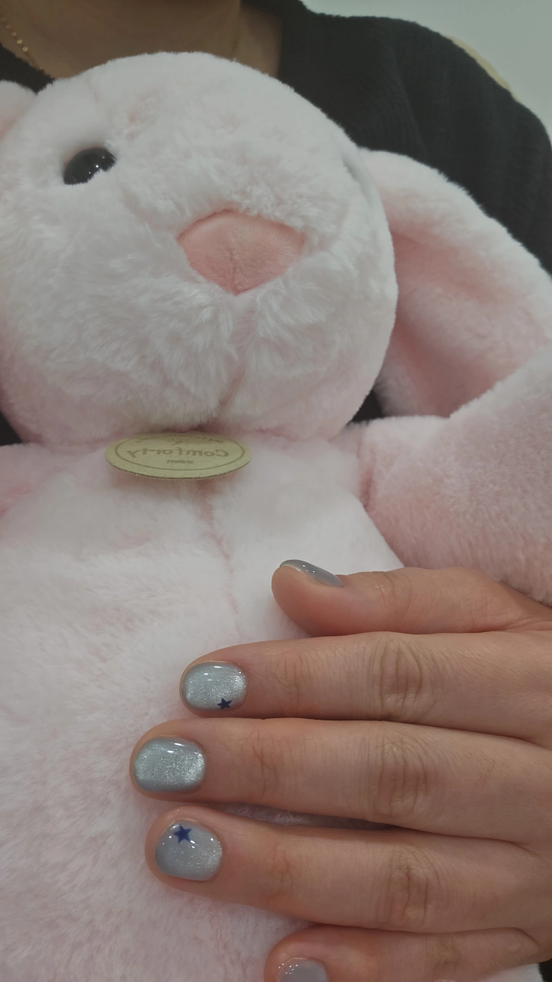 네 번째는 조금 색다르게 해봤습니다. 인스타를 보다가도 예전에 눈에 띄지 않던 다른 분들의 네일아트가 눈에 띄고 저장을 하게 되는데 그 중에서도 하늘색 자석네일에 네이비 별을 그린 네일이 예뻐보이더라고요. 그래서 도전해봤습니다.