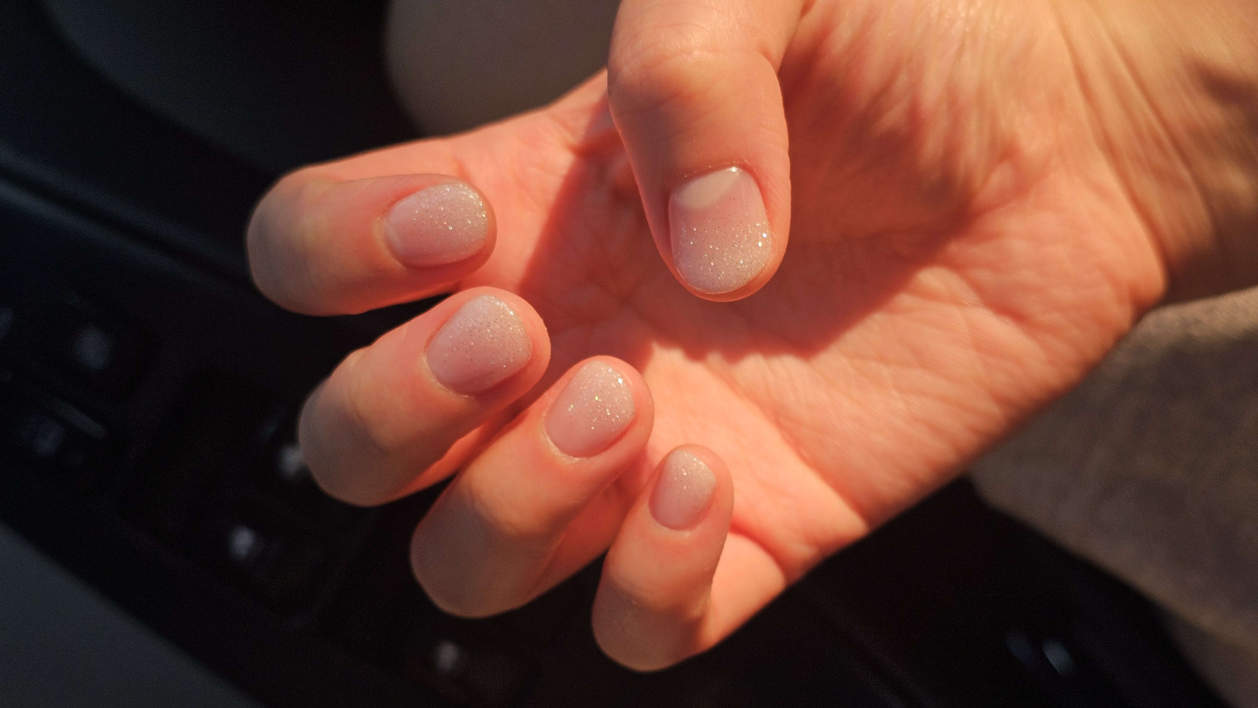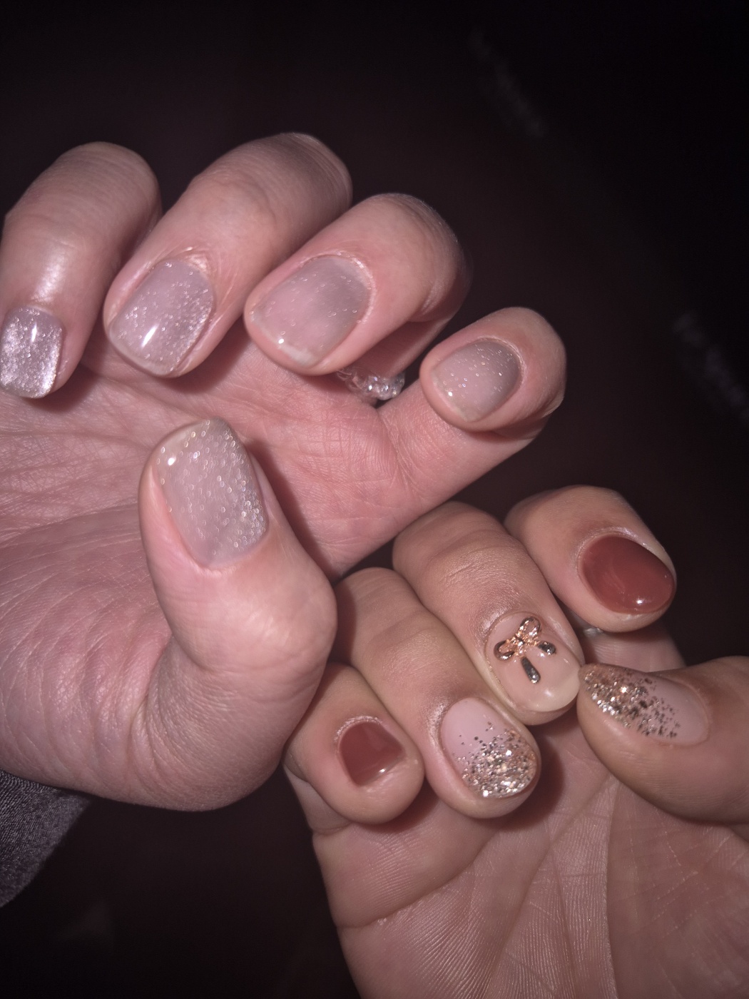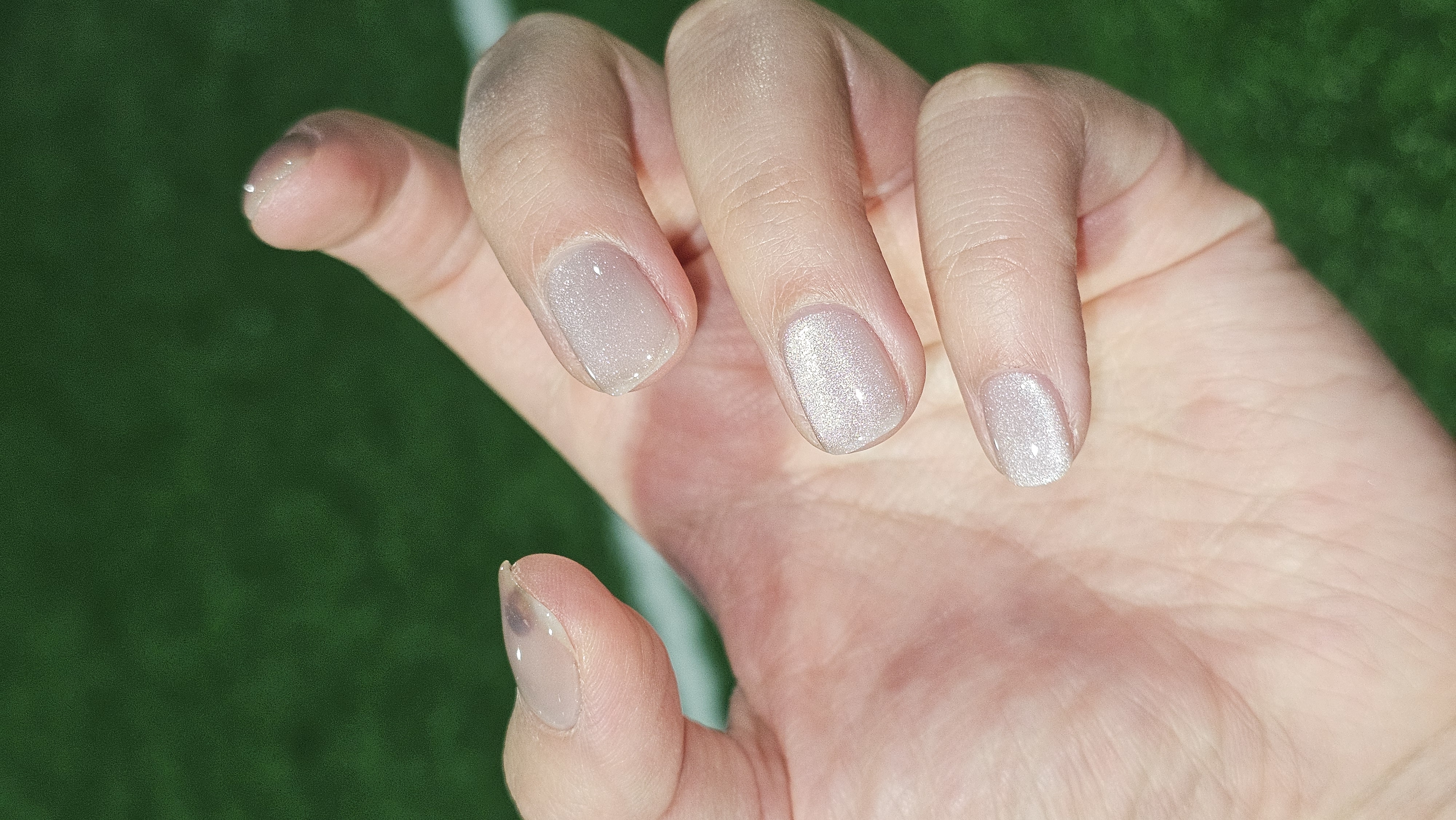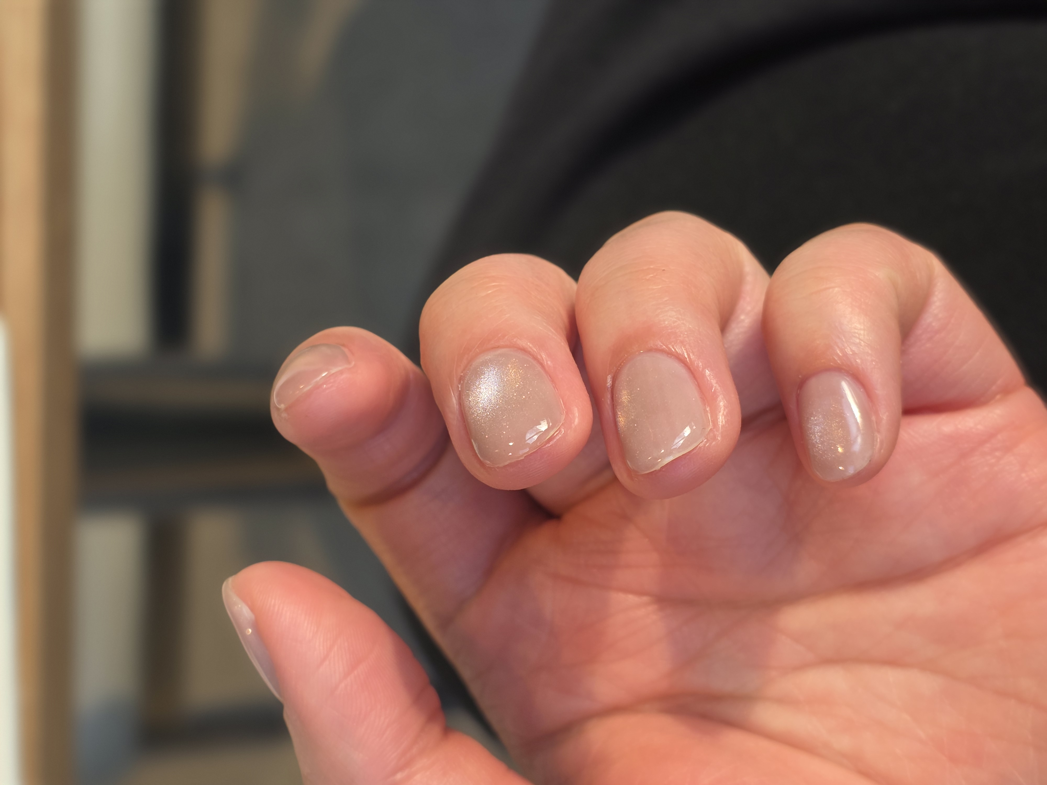 2번째 고운 입자의 펄들이 들어간 네일로 그라데이션 하고
