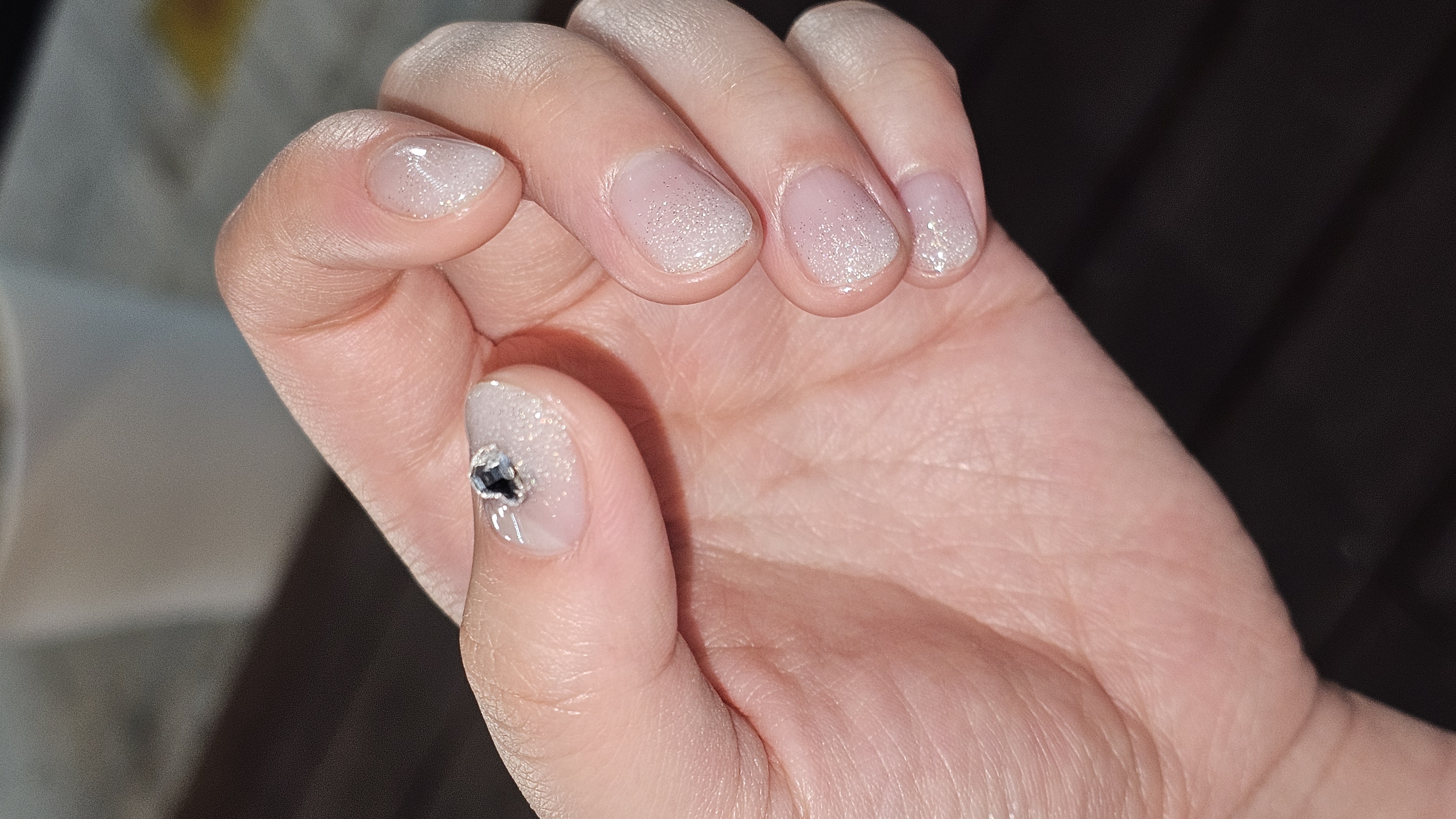 글리터를 빼고 시럽? 느낌에 네일로 했고요. 상처가 아직 있는 상태라서 이 날도 파츠를 붙였습니다.